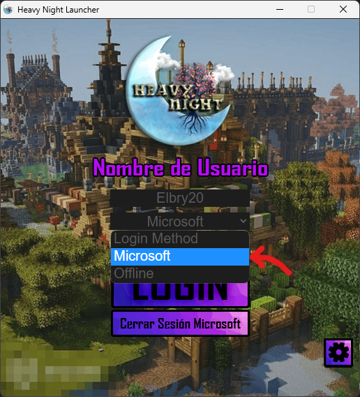 Método "PREMIUM": Seleccionan la opción "Microsoft" e inicia sesión con tu cuenta de Minecraft para luego darle al botón de "Login" y seguidamente se abrirá el Minecraft con el modpack puesto.