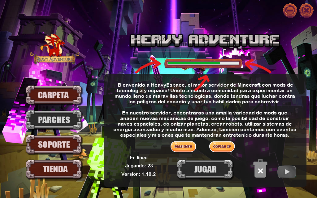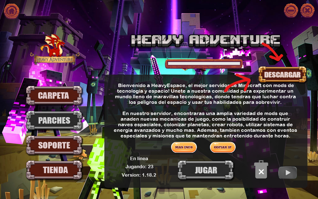 Para este ejemplo seleccionaremos la categoría "Heavy Adventure", seguidamente le daremos al botón de "Descargar" el cual comenzara con la descarga del instalador de la instancia y los mods actualizados para ese Modpack.